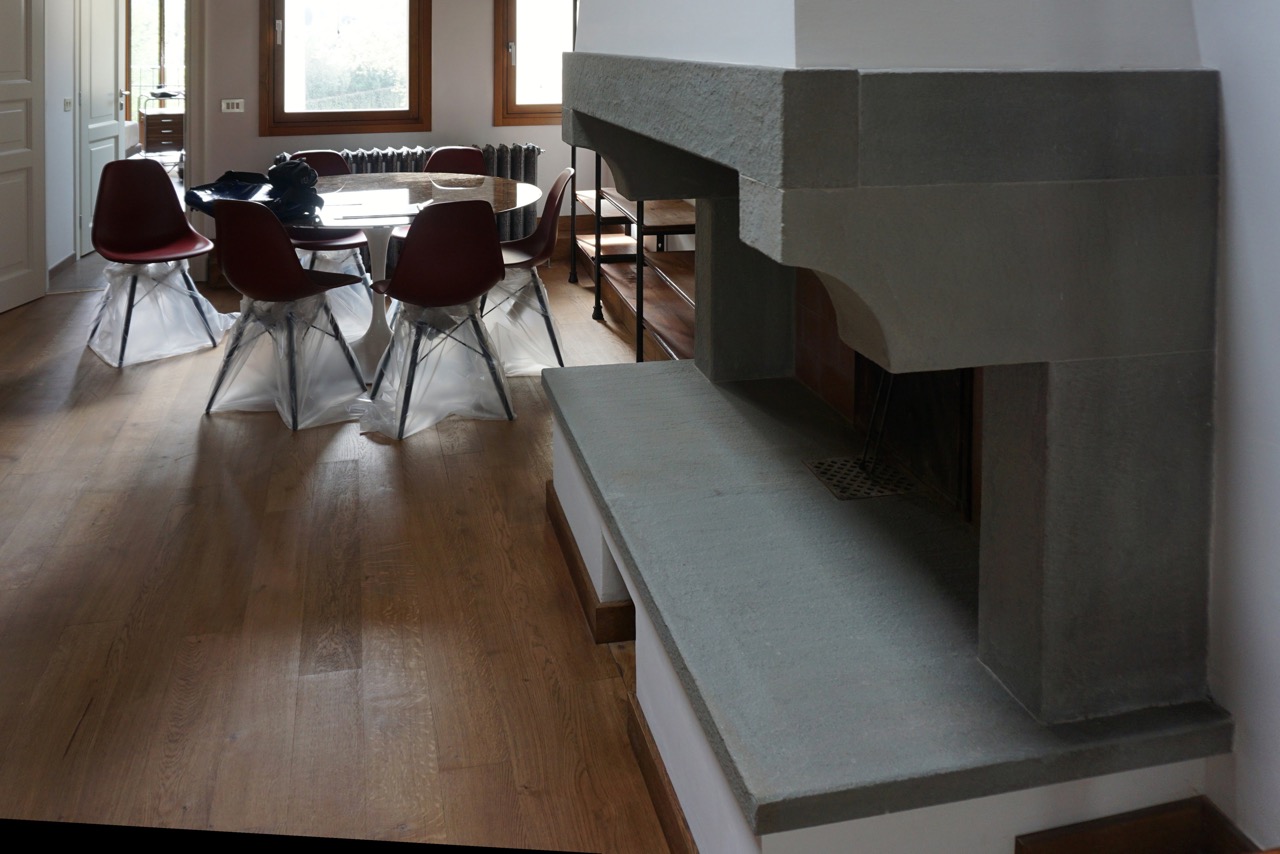 Ogni camino viene progettato su misura, sulla base delle esigenze del cliente: non esistono dimensioni standard, perché ogni ambiente ha le sue proporzioni, le sue aperture, i suoi vincoli. La progettazione è quindi un momento centrale, in cui si definiscono stile, misure e dettagli decorativi; in questa fase si lavora anche sulla selezione del materiale: la pietra serena utilizzata proviene da cave in Toscana, scelte per la qualità cromatica e strutturale. La lavorazione è interamente artigianale, ed è questo processo che rende ogni caminetto non solo unico, ma anche perfettamente coerente con l’ambiente in cui sarà inserito; è importante sottolineare che l’installazione di un caminetto in pietra serena è possibile anche in appartamenti o abitazioni non indipendenti, purché vengano rispettate le condizioni strutturali e le normative tecniche in materia di aerazione e scarico dei fumi. Sempre più spesso, infatti, si realizzano camini a bioetanolo o camini a gas con rivestimenti in pietra serena, che permettono di mantenere la componente estetica senza rinunciare alla praticità.