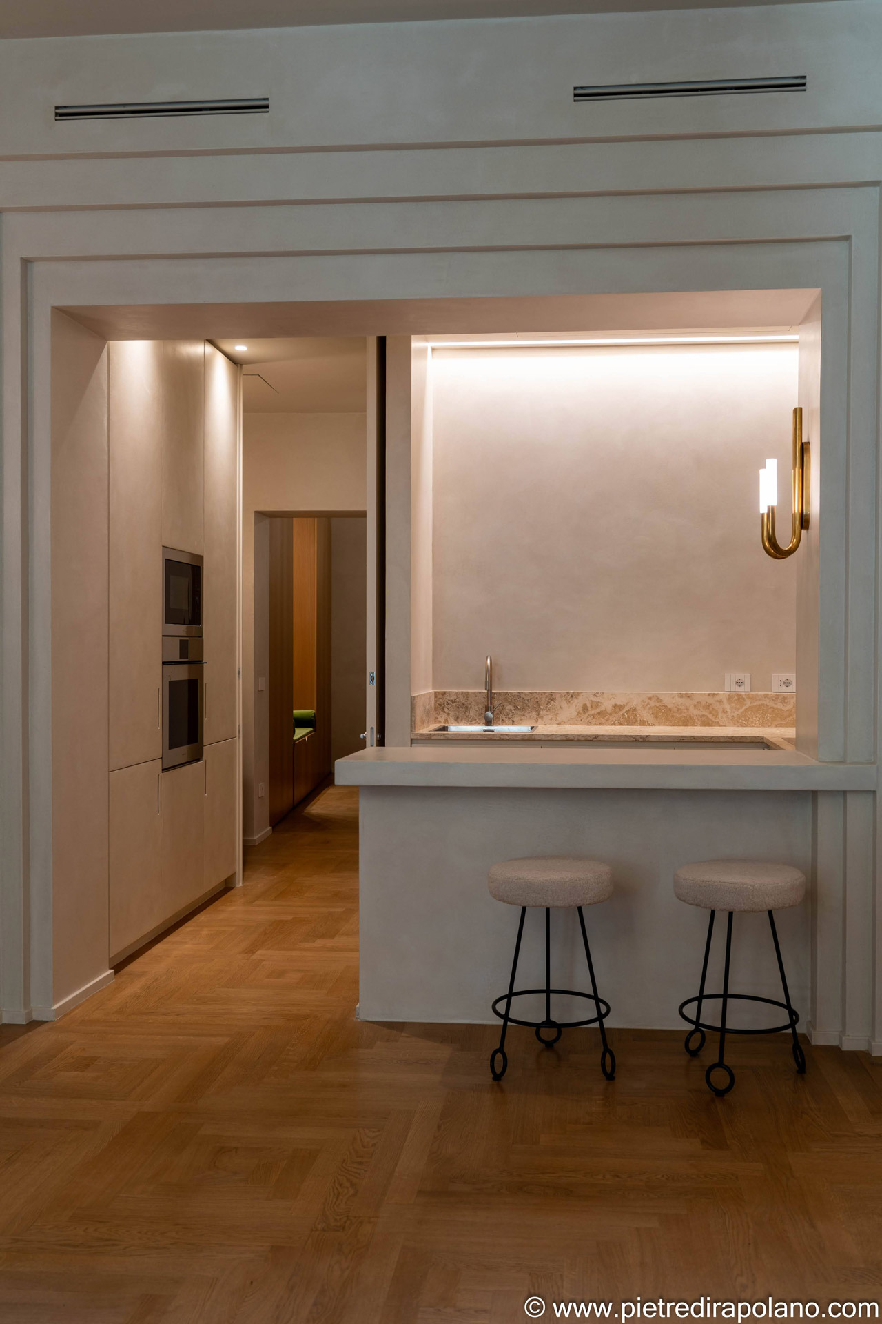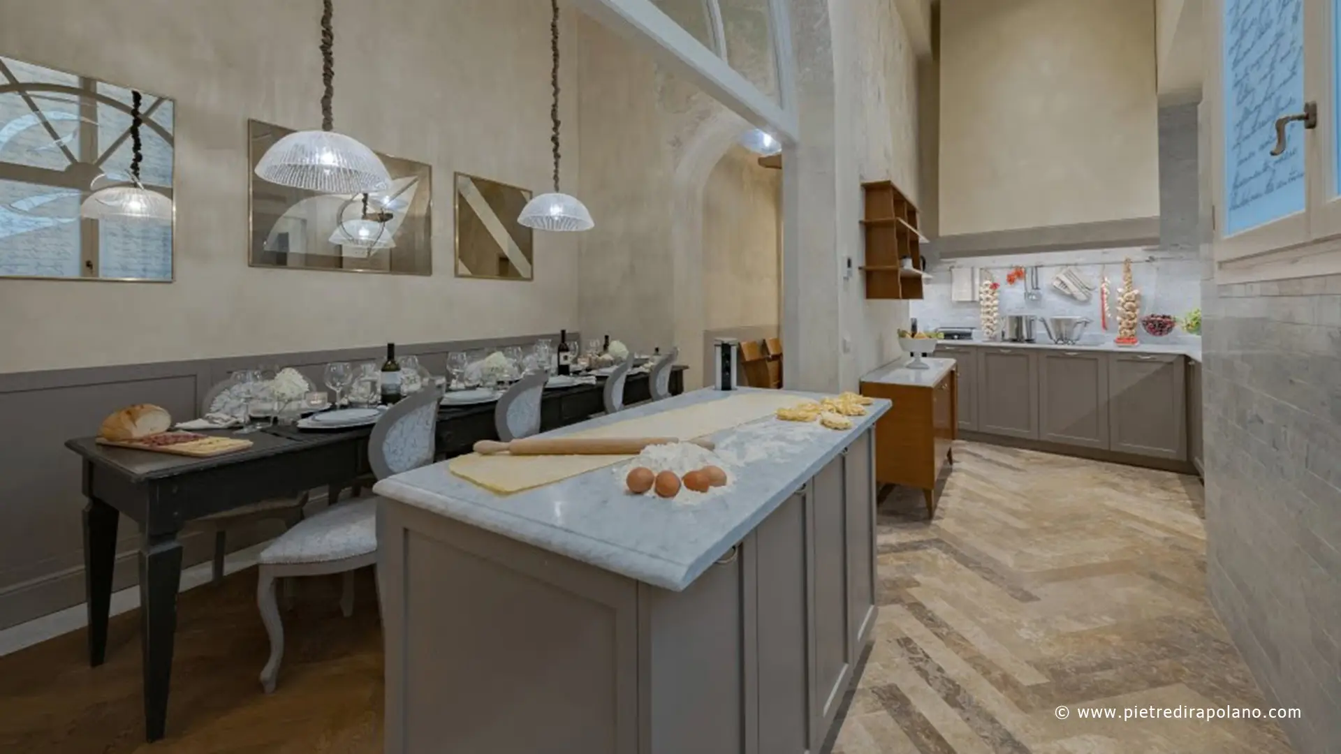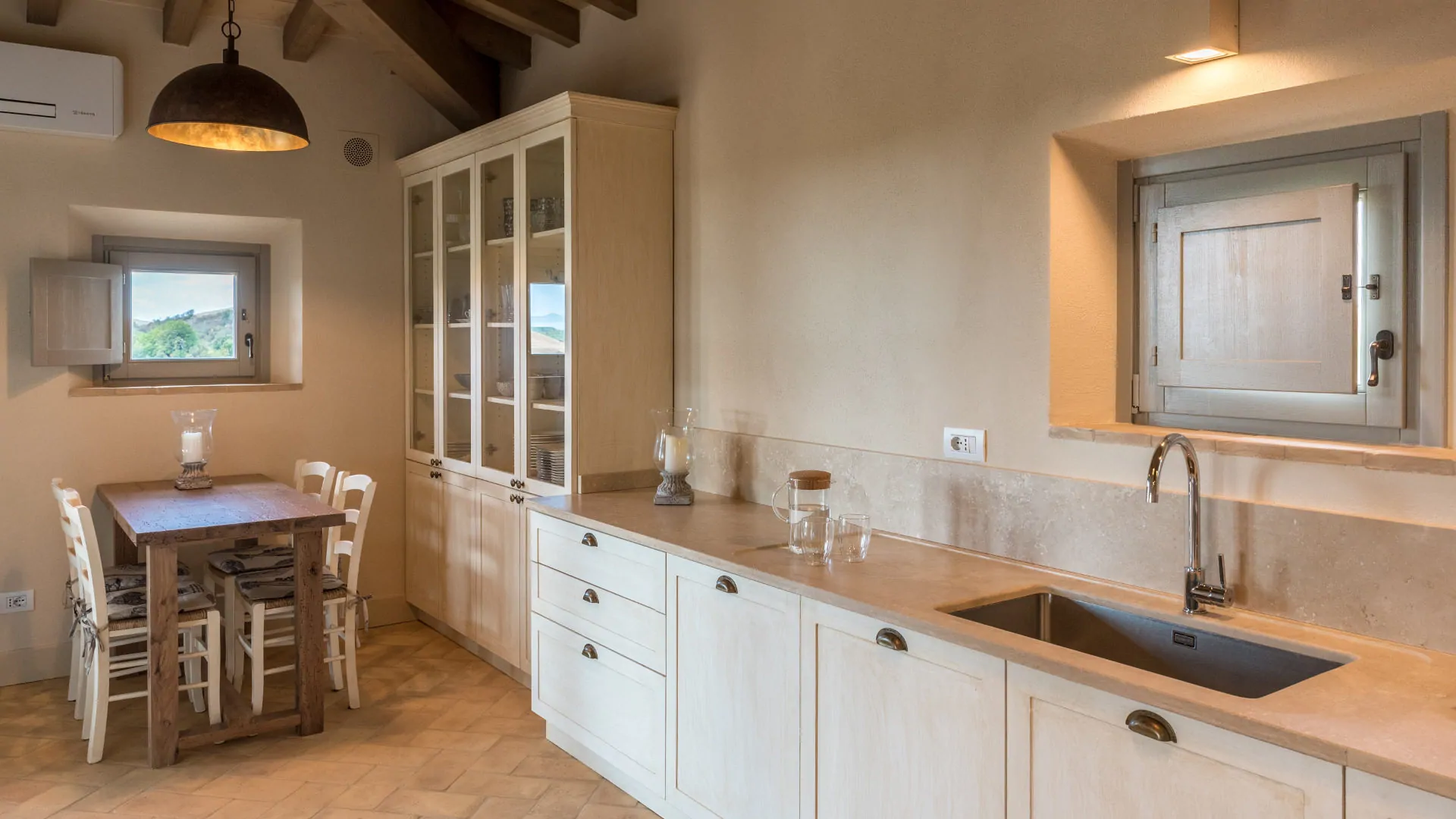 Il piano cucina in travertino assicura grande resistenza e un forte impatto estetico, motivo per cui spesso viene scelto per dare risalto anche alla cucina più semplice.