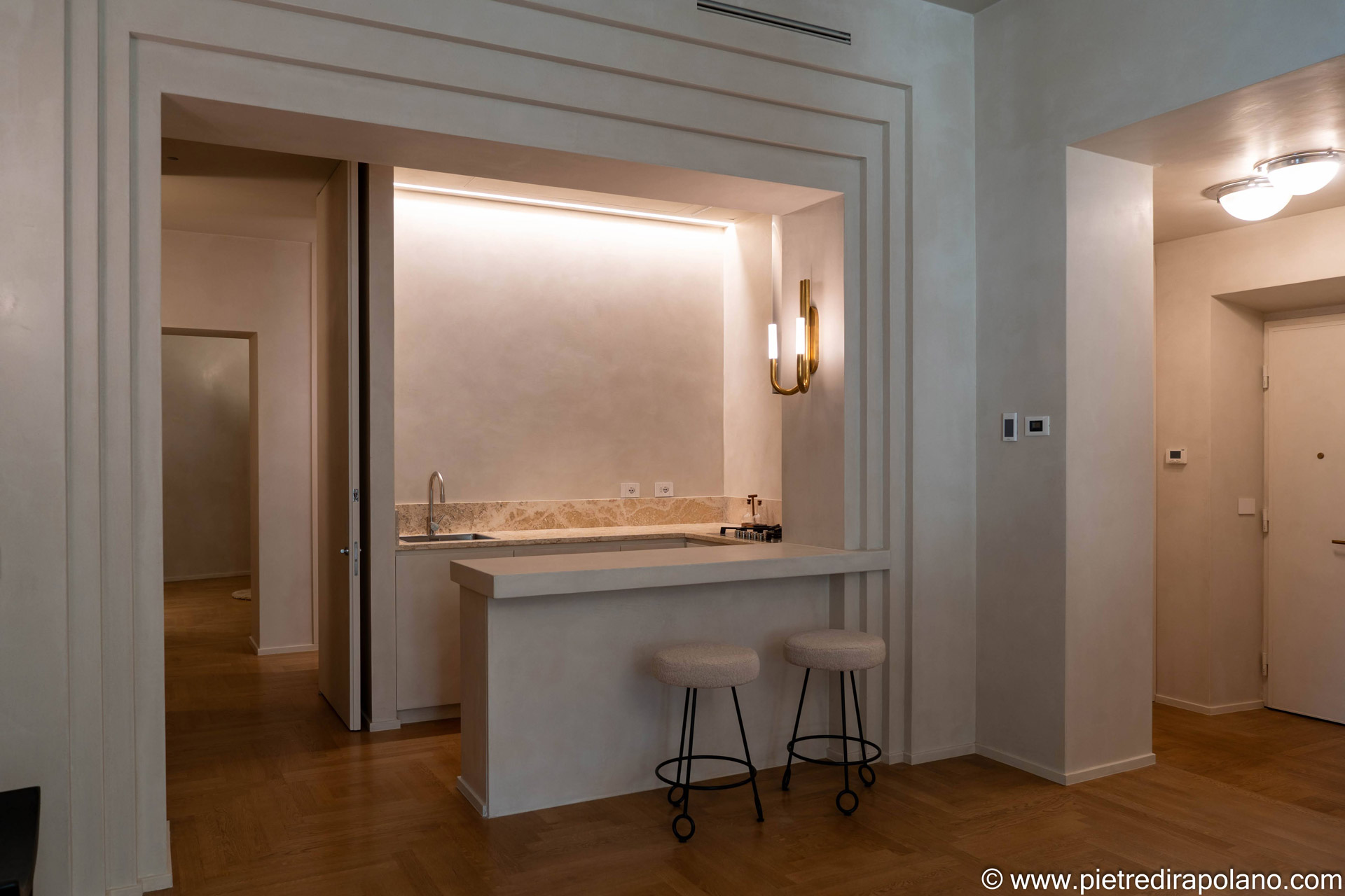 L’eleganza e il pregio del materiale si abbinano a finiture particolarmente indicate che sanno otturare i pori tipici del travertino: il risultato finale è una superficie levigata e facile per ogni uso.