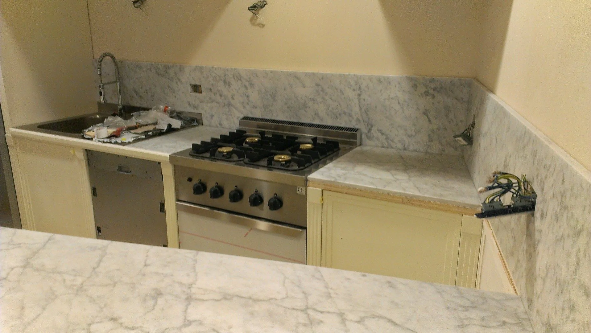 L’ultimo passaggio, il montaggio dei piani della cucina in marmo, viene anche eseguito da noi, su richiesta del cliente.