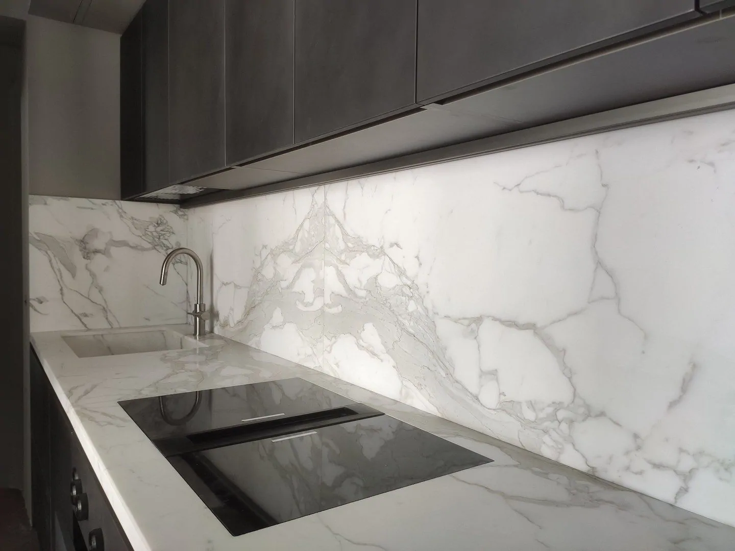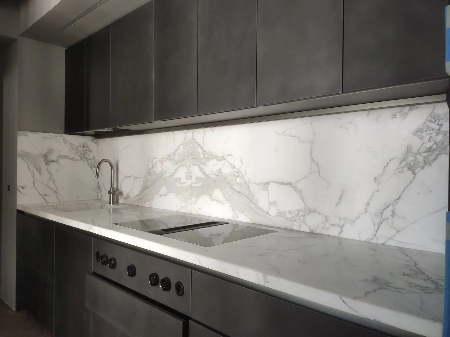 I pavimenti e i rivestimenti in marmo per una cucina possono essere o di formato standard o di dimensioni su misura per adattarsi perfettamente alle superfici della cucina da rivestire.