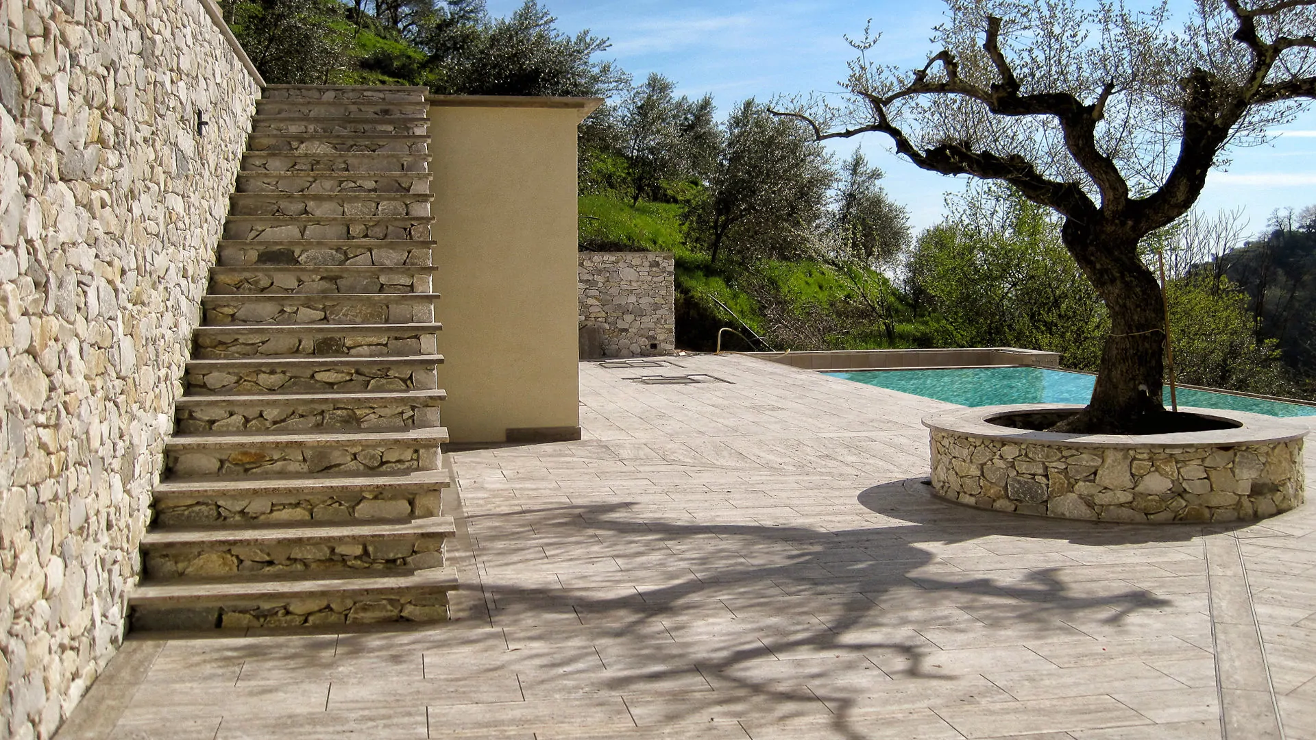 Als Option für den Bodenbelag kann Travertin im Garten Ihres Hauses zum Protagonisten werden. Vor allem als Boden kann er in verschiedenen Formaten verlegt werden, von der großen Steinplatte bis hin zu kleinen Fließen. Das Ergebnis einer guten Planung wird ein einheitliches Ambiente im Freien sein, wo die einzigartigen Farbübergänge und Aderungen, die Sie ausgewählt haben, bestens zur Geltung kommen werden.