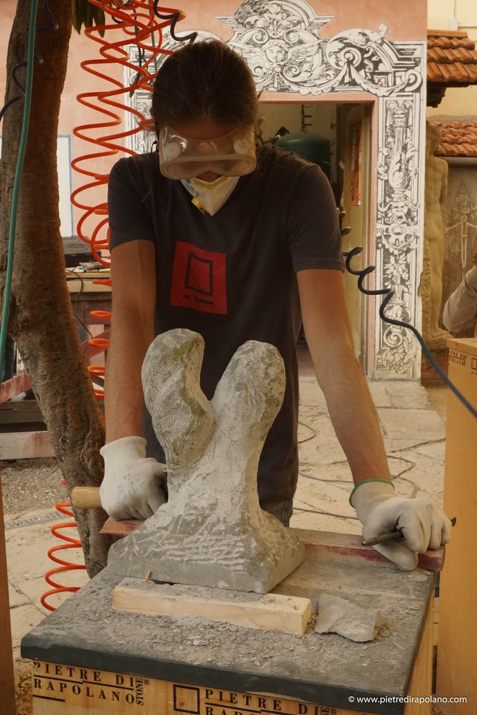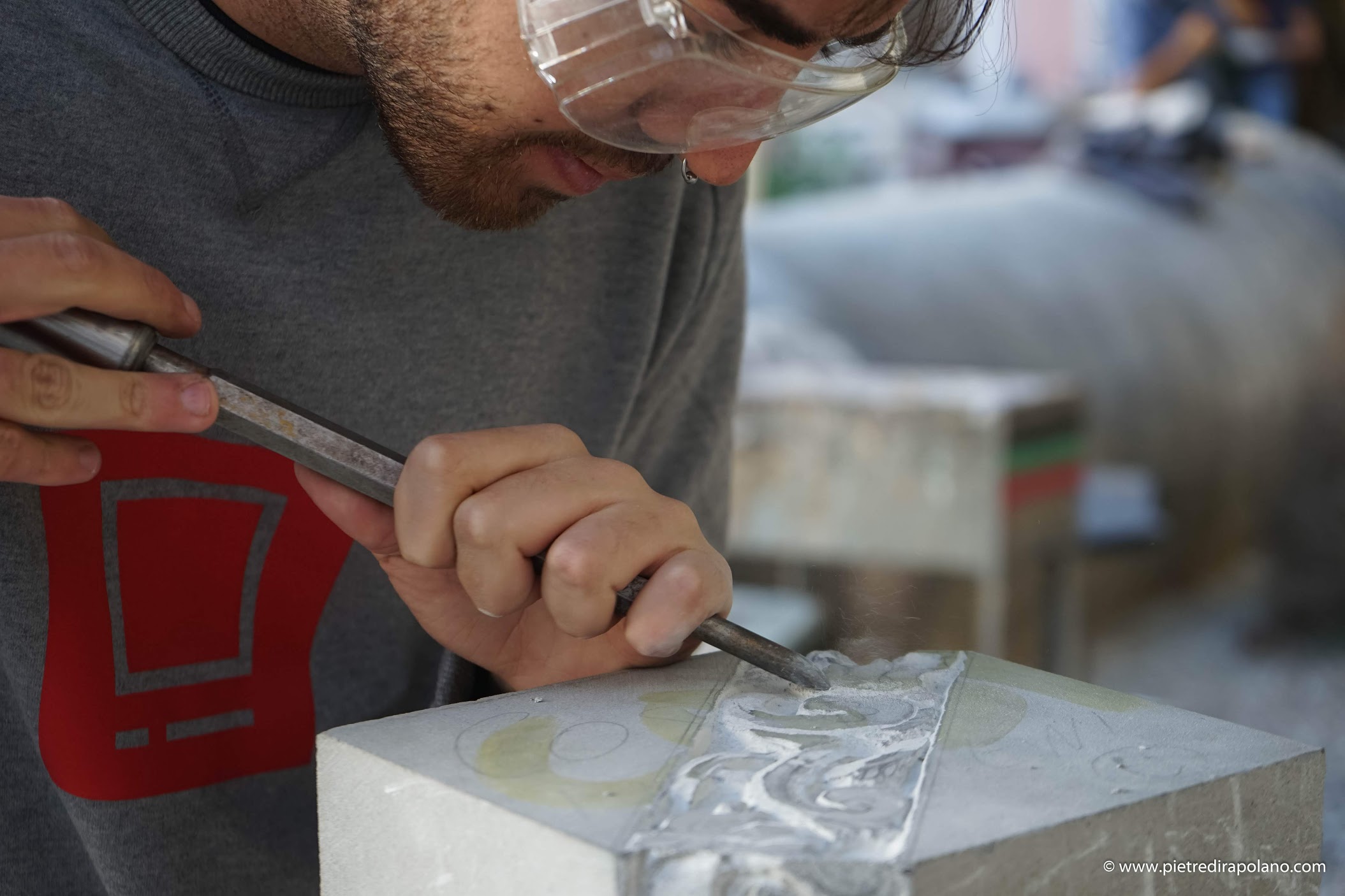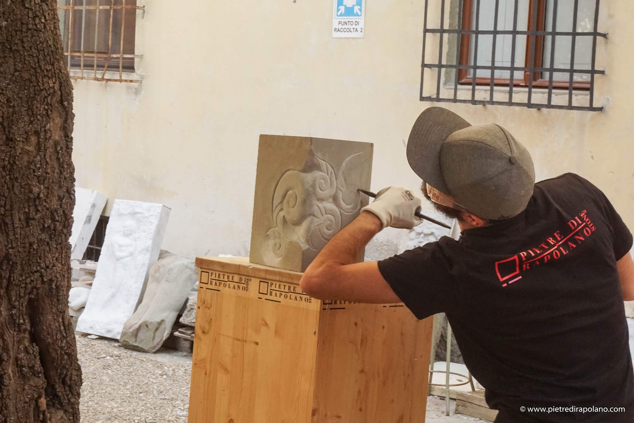 Drei Tage lang bearbeiteten vom Prof. Francesco Roviello, Dozent für Steinskulptur, ausgewählte Studenten einen Steinblock, um ihn in ihr Kunstwerk zu verwandeln.
