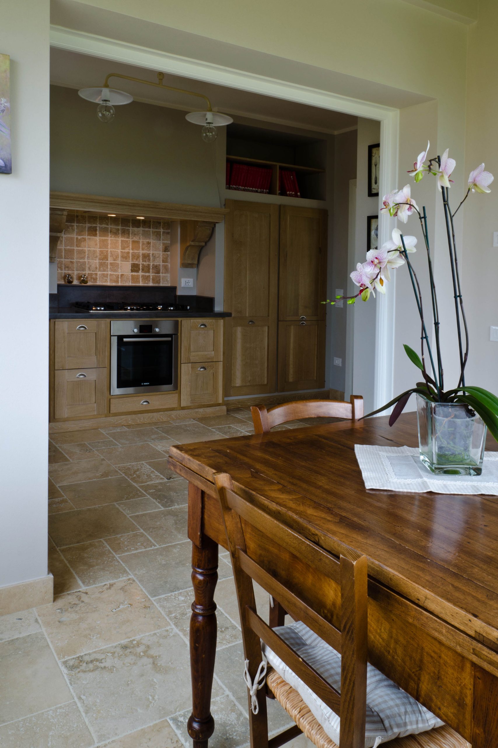 The choice follows the project’s guidelines aimed at using traditional Tuscan materials. Specifically, for the spacious bathrooms, the travertine Pdr 031 – Nuvolato was selected. The architects designed the bathroom cladding up to a height of 120 cm, in combination with the floor of the same color to create a homogeneous and prestigious environment.
