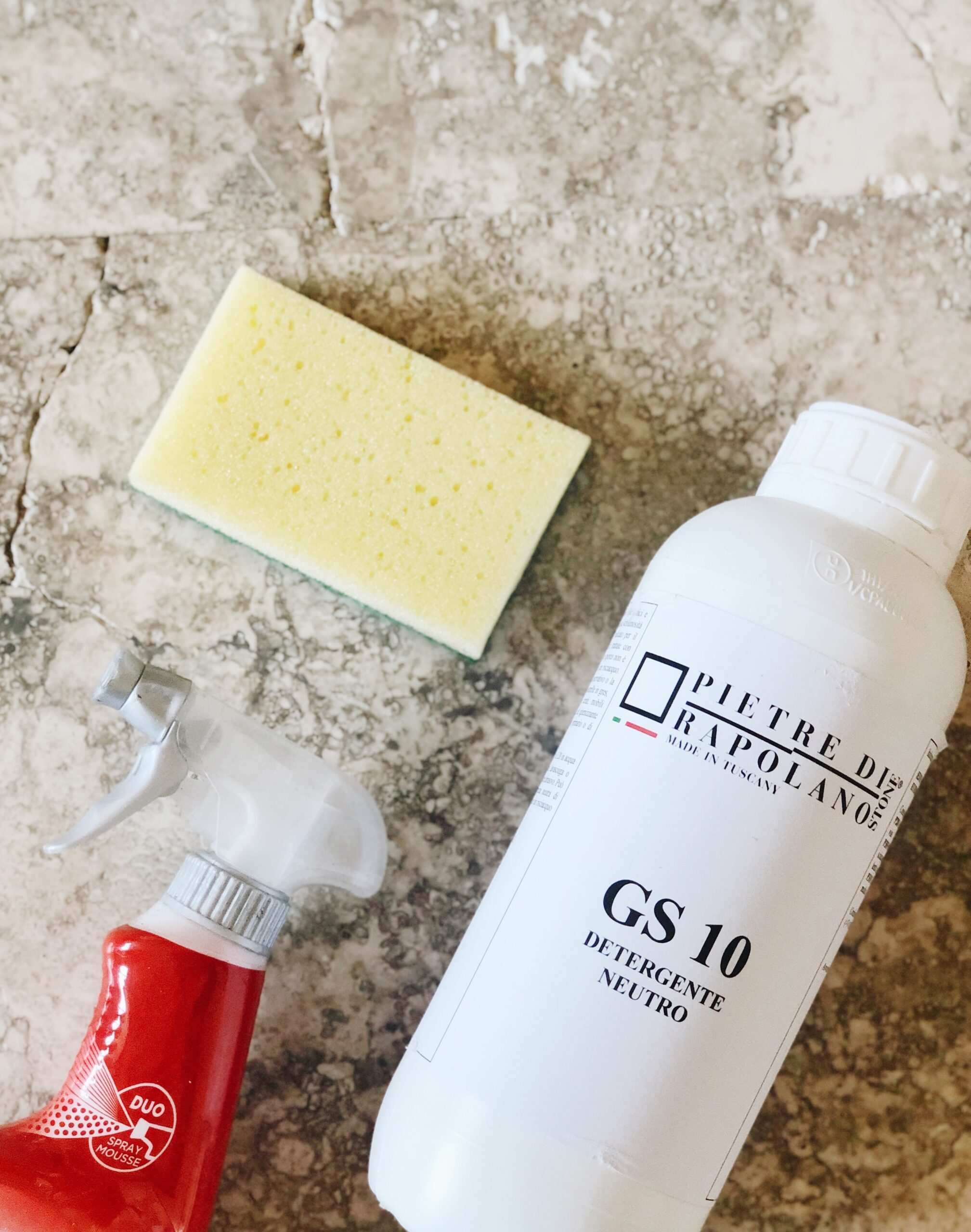 However, if molds have formed, a phenomenon not dependent on the type of material but on the type of environment in which it is located (for example, an outdoor area in a shaded zone, or a shower placed in a humid environment), to clean the travertine you will need to use bleach by spraying the moldy surface and letting it act for a few hours. This step is necessary, do not be afraid of damaging the surface: a s already mentioned, what causes damage is the acidity of the detergent, and bleach is not acidic. At that point, a brush, water, and/or a pressure washer will completely remove the mold residues.