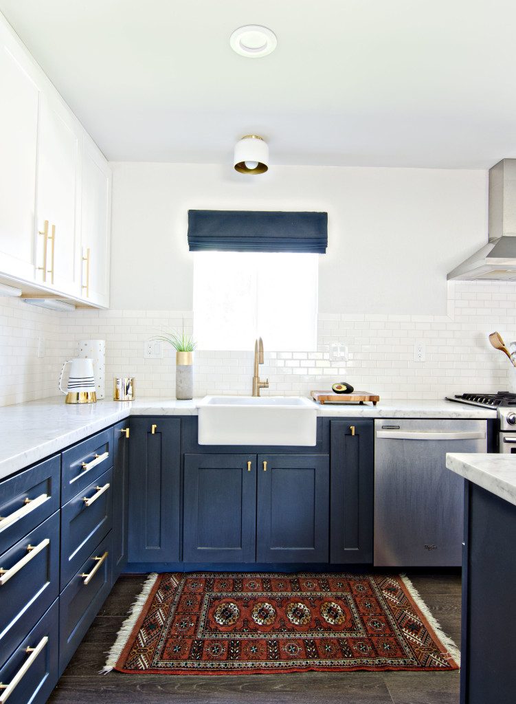 Regarding colors for kitchen furniture, the most suitable are in shades of blue and green. A white, gray, or black marble surface highlights the color, creating the sought-after chromatic contrasts.