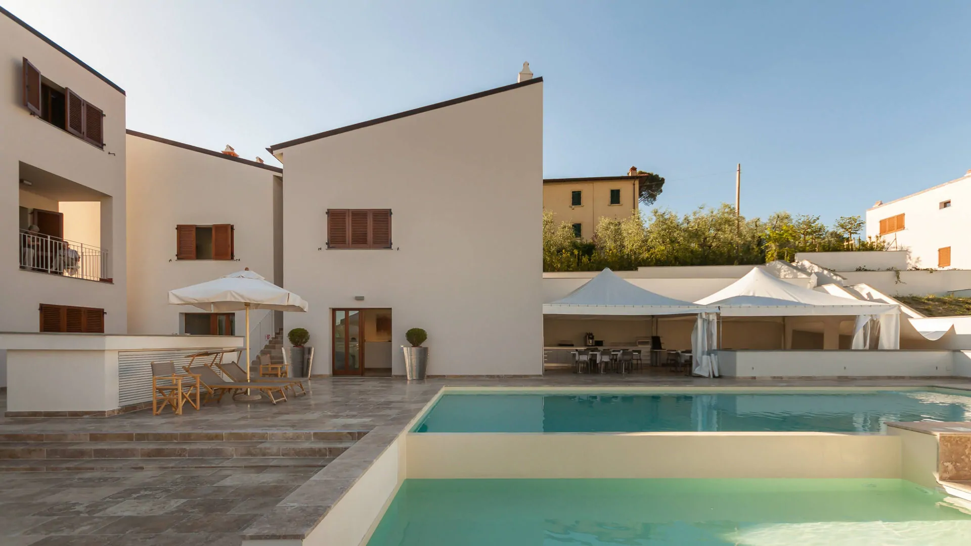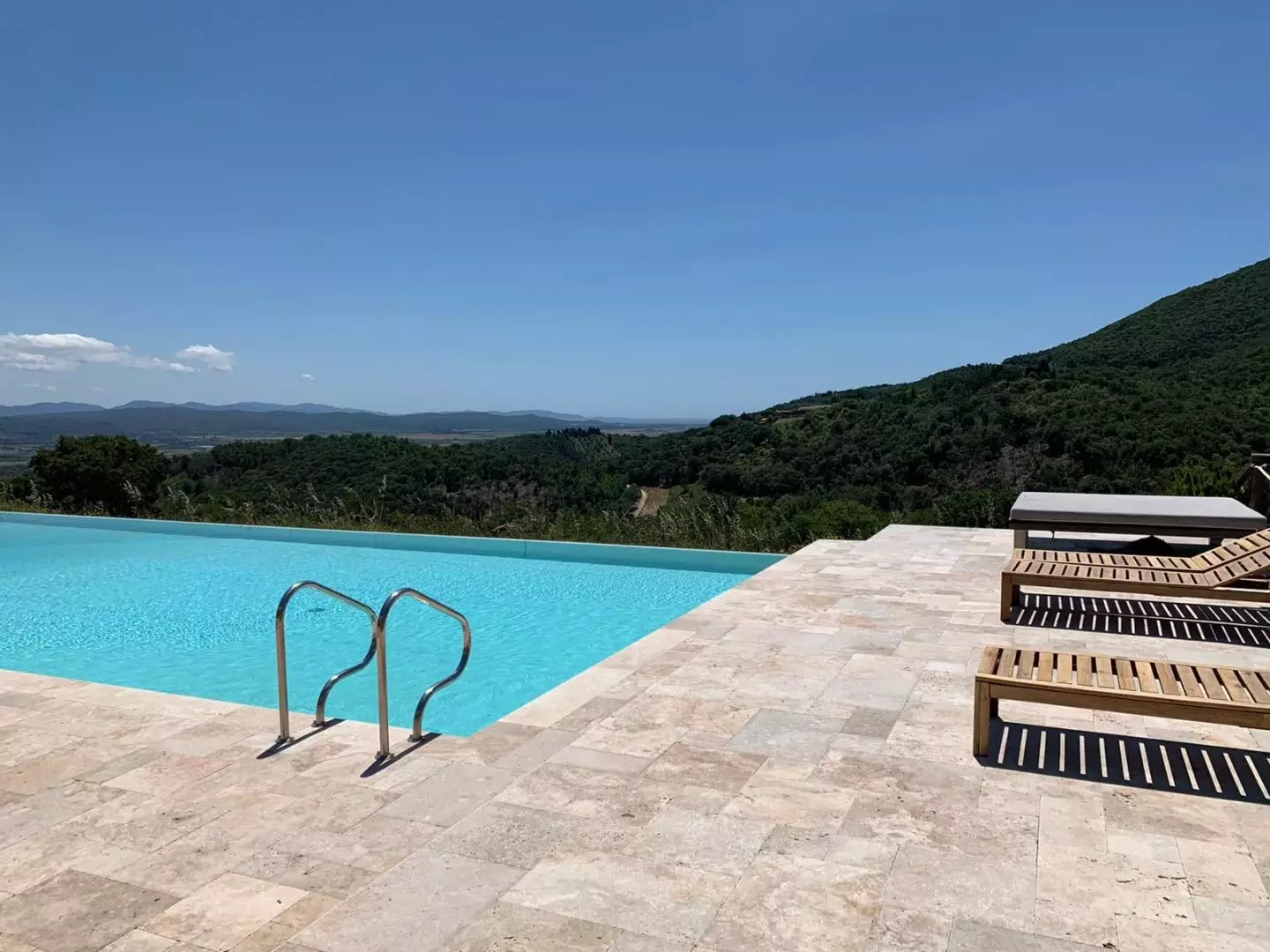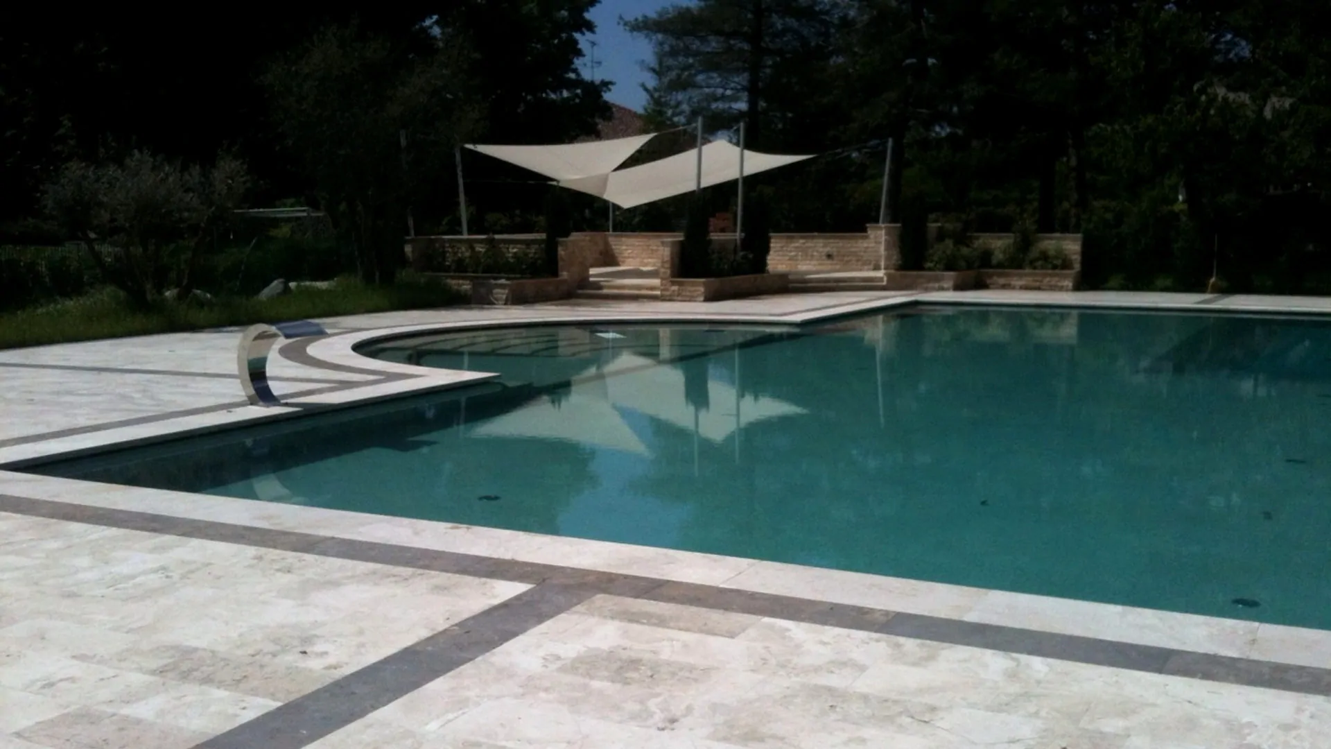 Swimming pool external floor in travertine