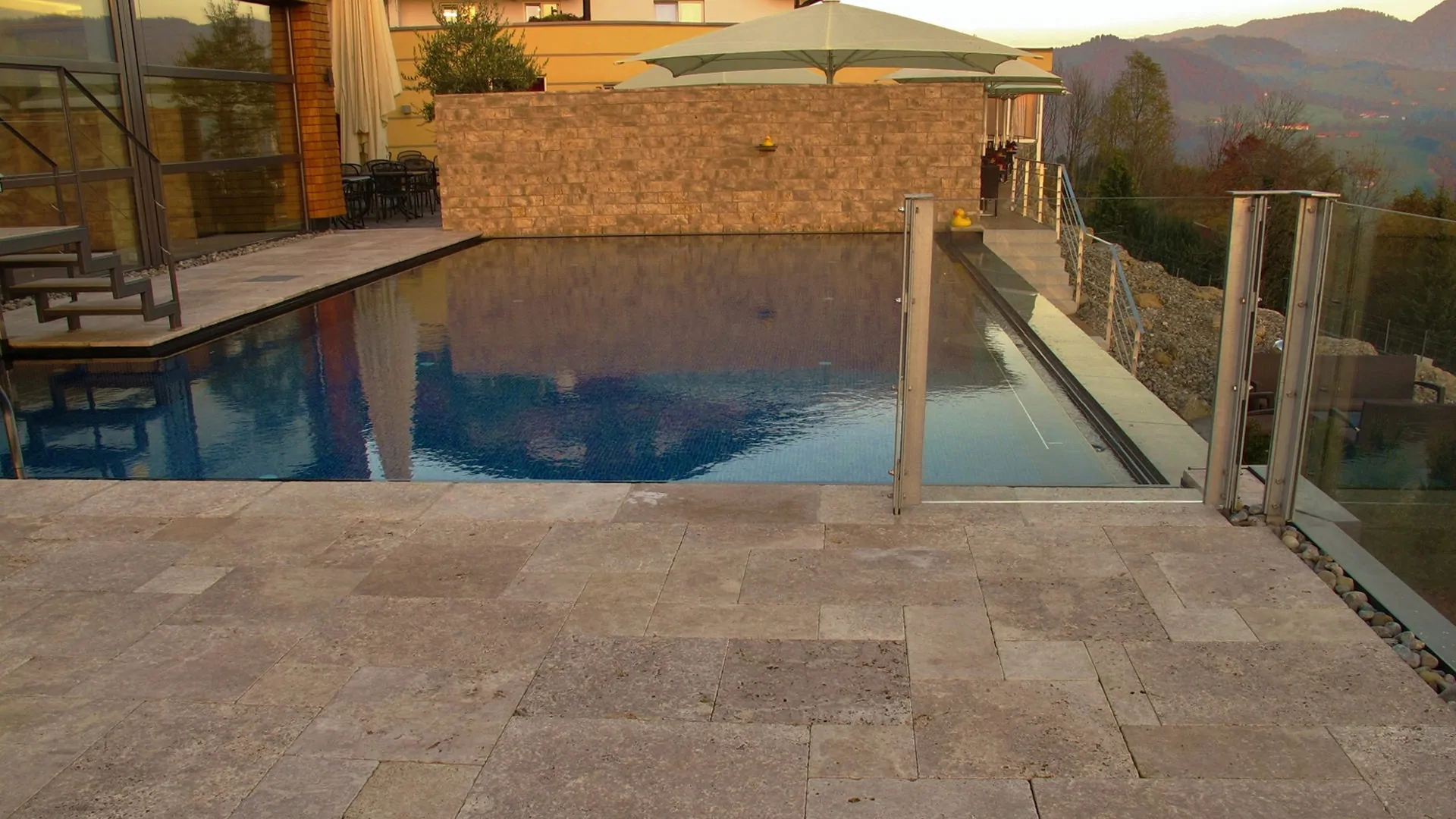 Travertine is resistant, able to easily tolerate extreme meteorological fluctuations and has a naturally non-slippery weave: all these peculiarities mean that it doesn’t change over time and make it perfect for an environment close to water.