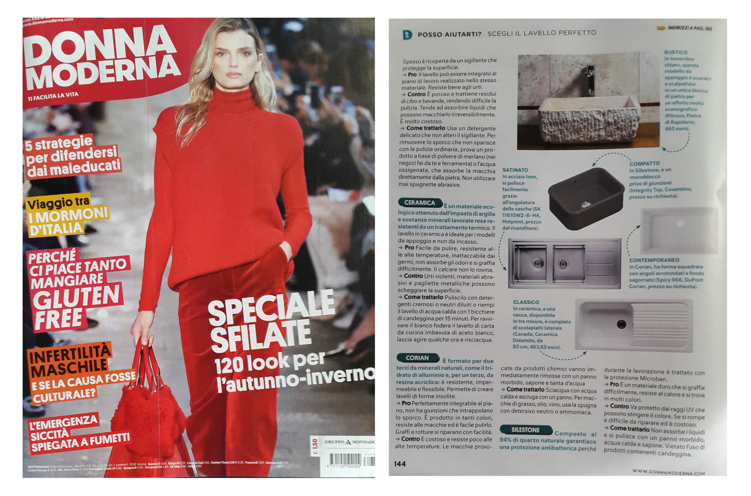In Donna Moderna No. 35, a feature dedicated to choosing a kitchen sink. A decision driven by aesthetic preferences but also by the characteristics and functionality of the materials used. Stone certainly has great charm, especially in its chiseled version, as in the PILOZZO model with its rustic surface.