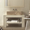 Farm is a large-sized sink with clean and essential lines that can be used both in the kitchen and bathroom. It features a wide and deep single basin, carved from a block of classic beige travertine: an impressive design capable of enhancing and enriching the environment where it is installed.