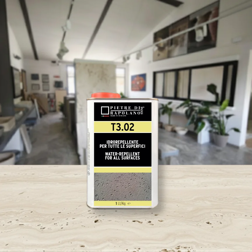 The XSTONE T3.02 treatment is the ideal solution for long-lasting protection of all absorbent surfaces, both indoors and outdoors, without altering their natural appearance. Thanks to its solvent-based formula, it ensures complete water repellency to prevent damage and blemishes.