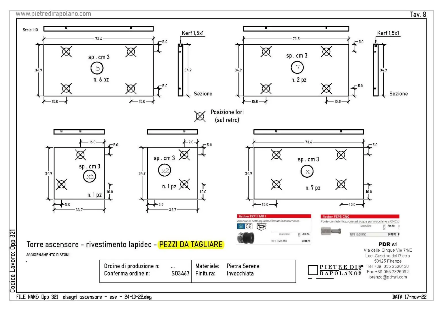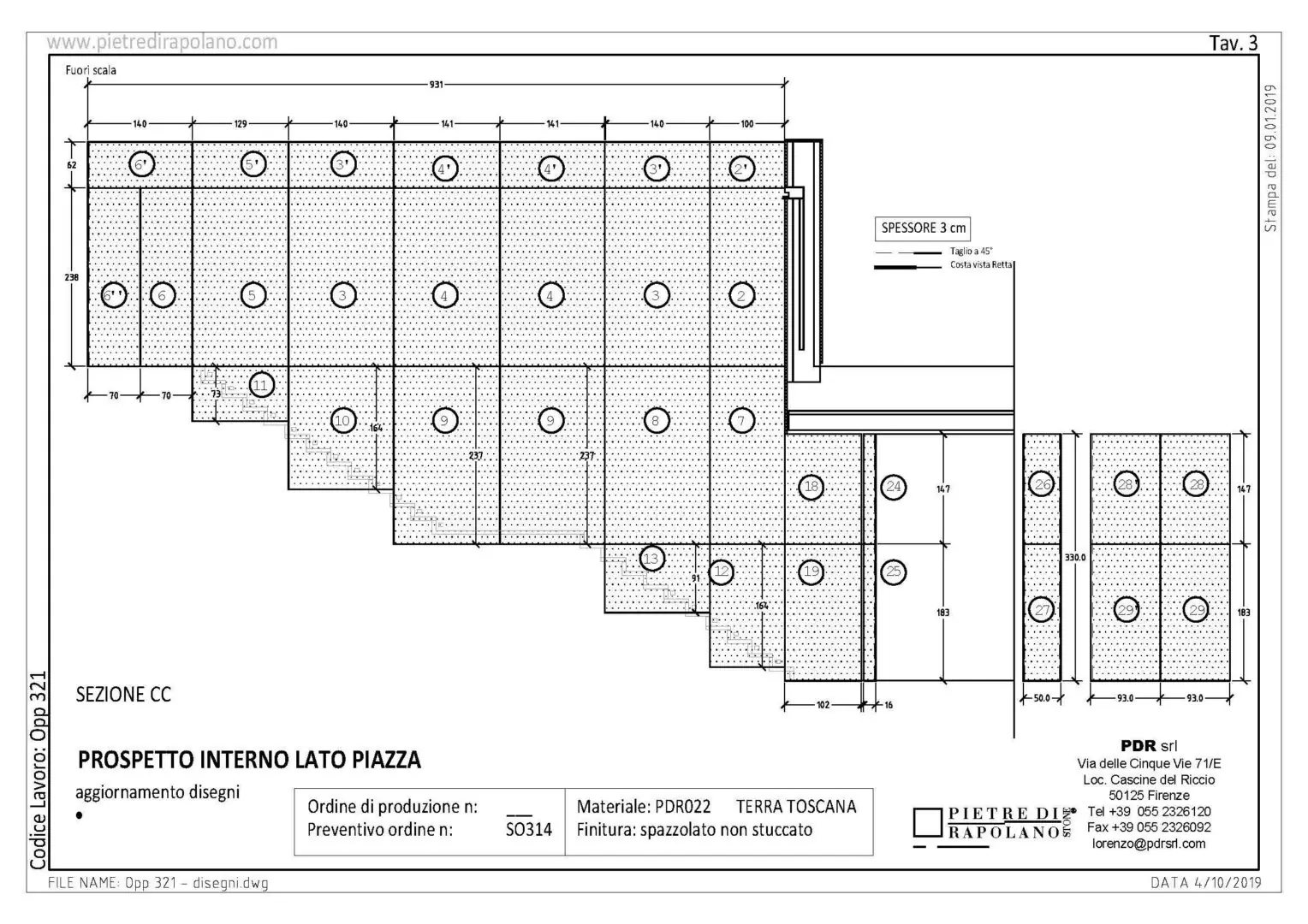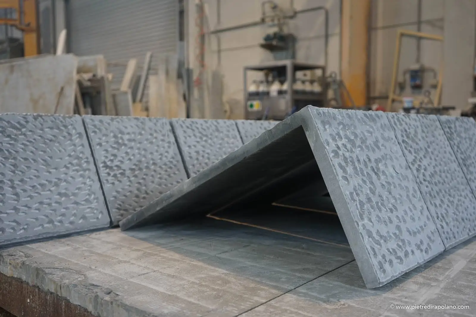 - The dimensioning of the large slabs and their finishes.