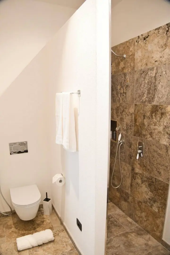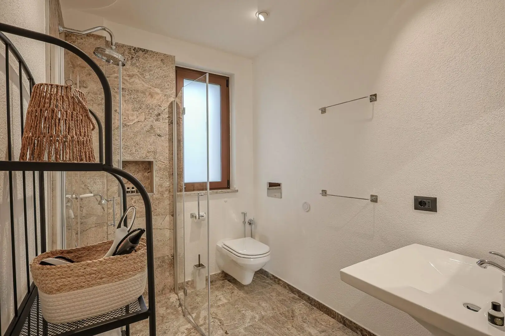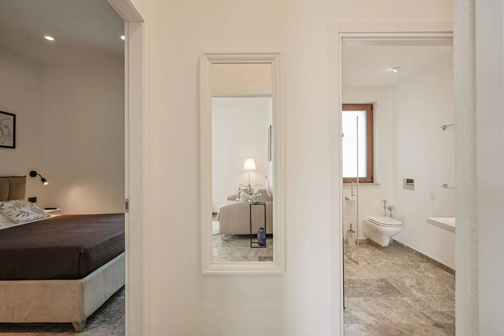 Even in the bathrooms, attention to detail is evident. The chosen coverings complete the picture, creating an atmosphere of luxury and practicality. The textures and colors harmonize with the flooring, giving each space a distinctive character, meticulously crafted in every detail.