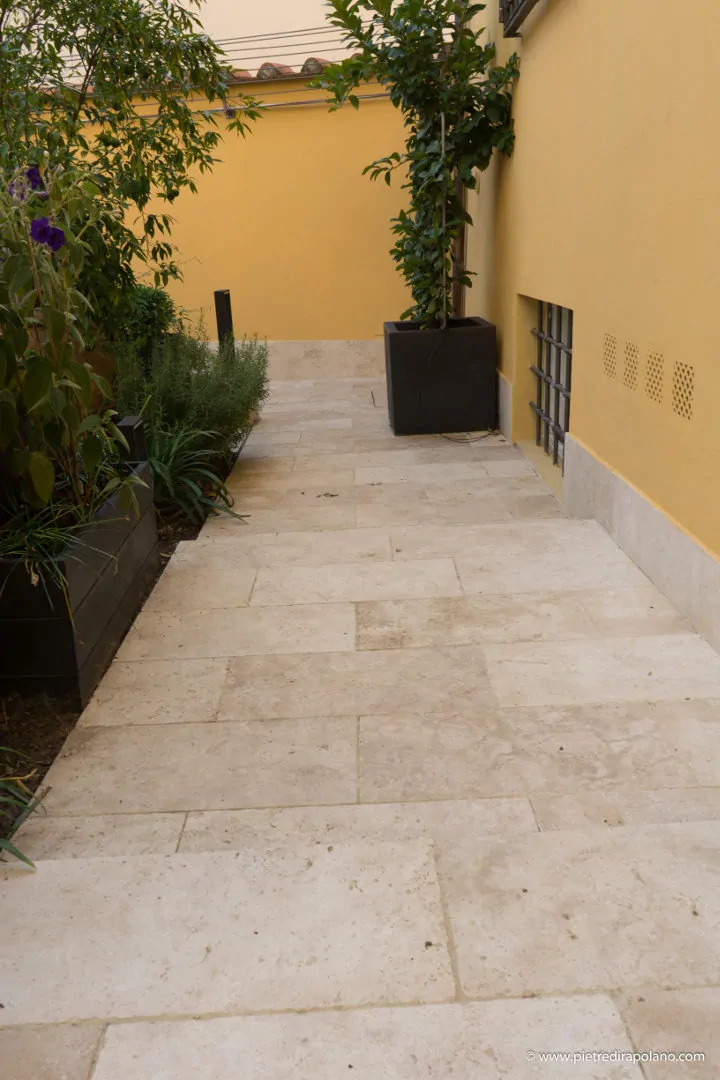 I pavimenti per gli esterni devono essere impermeabili, antiscivolo, antigelivi, resistenti ai carichi, agli agenti atmosferici e agli sbalzi di temperatura. Il travertino risponde a tutte queste caratteristiche ed è l’ideale per aree all’aperto: terrazzi, giardini, vialetti carrabili, scale e cortili.