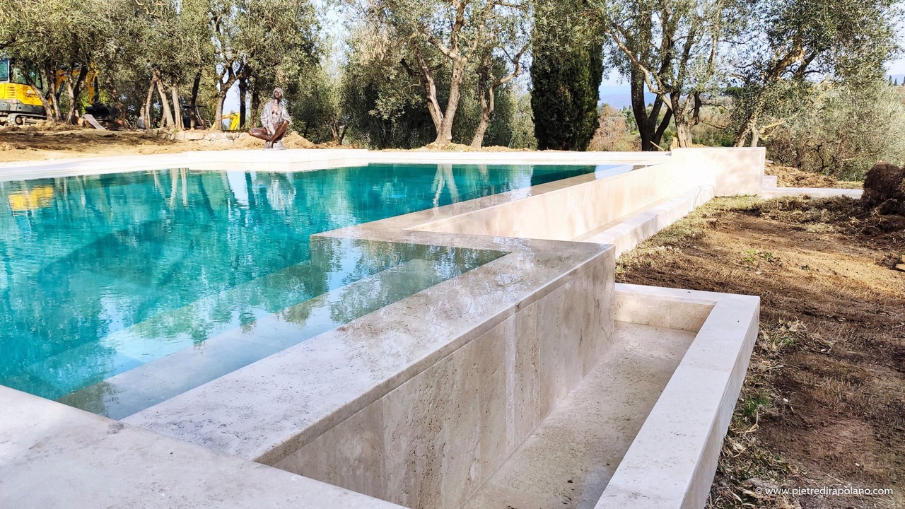 Ogni piscina viene progettata e realizzata in base allo spazio disponibile e ai gusti estetici del cliente. La struttura, resistente e duratura, può essere parzialmente interrata (fino a 40 cm) e viene rivestita esternamente e lungo il bordo superiore con travertino naturale. Quest’ultimo non è solo un elemento decorativo, ma una vera e propria garanzia di qualità: è antiscivolo, resistente agli agenti atmosferici e valorizza qualsiasi contesto con uno stile senza tempo. L’interno della vasca viene rifinito con PVC disponibile in varie colorazioni e texture, anche effetto pietra naturale, per un risultato omogeneo e di grande impatto. Hai bisogno di maggiori informazioni?
