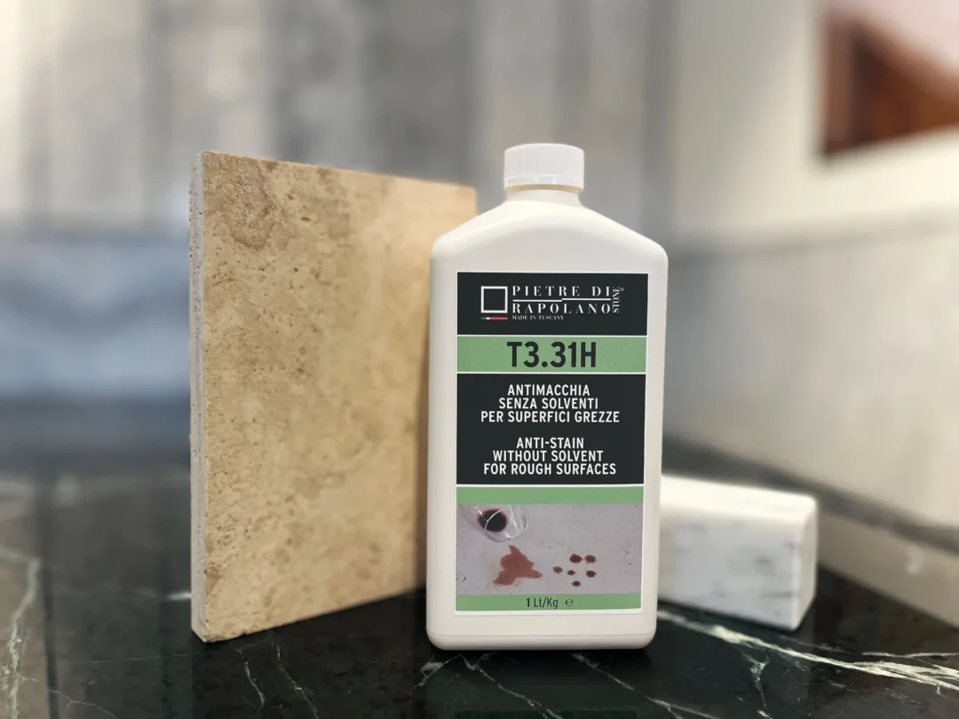 T3.31H – Antimacchia Impregnante Eco-compatibile (1 Litro): Un protettivo all’avanguardia privo di solventi, ideale per superfici grezze o naturali. Penetra in profondità garantendo una barriera totale contro liquidi, oli e grassi senza alterare l’aspetto estetico originale della pietra. Essendo a base acqua, è sicuro per l’utilizzatore e per l’ambiente.