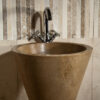 Il lavabo di forma conica appoggia direttamente a terra, free standing, lo scarico è standard a parete. Con le stesse linee semplici abbiamo la vasca in massello “Cono”, per donare un design unico ed esclusivo al tuo bagno.