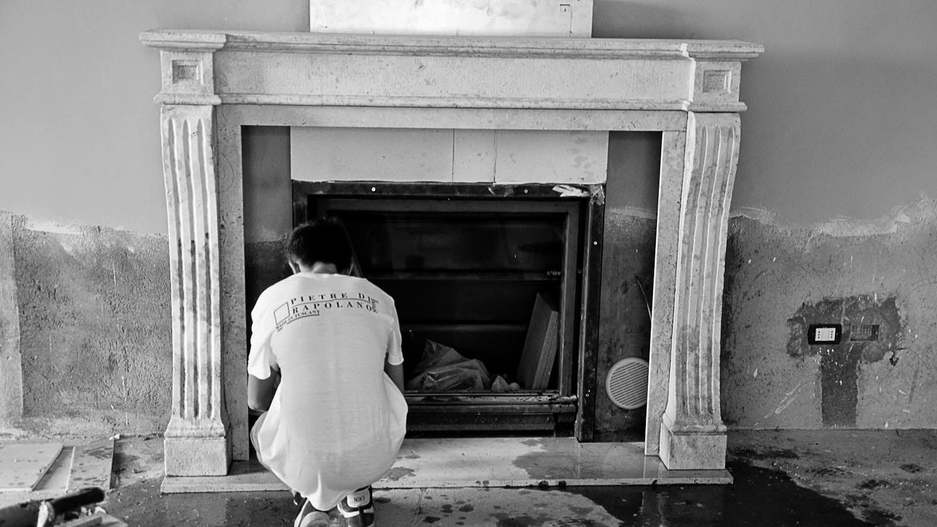 Residenza privata situata sulle colline di Fiesole alle porte di Firenze, dove a fare da protagonista è il camino scolpito a mano in travertino chiaro dalle linee classicheggianti.