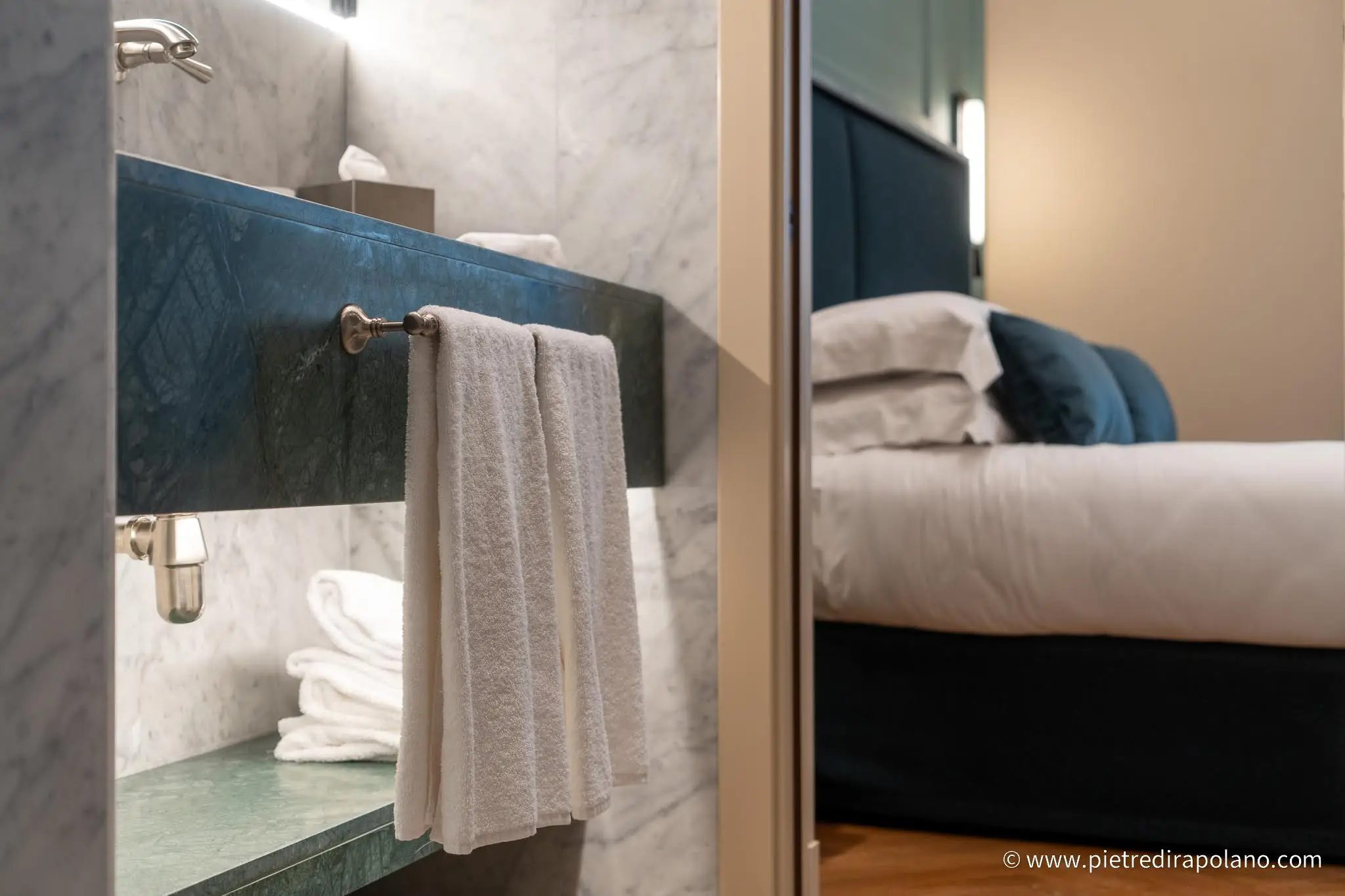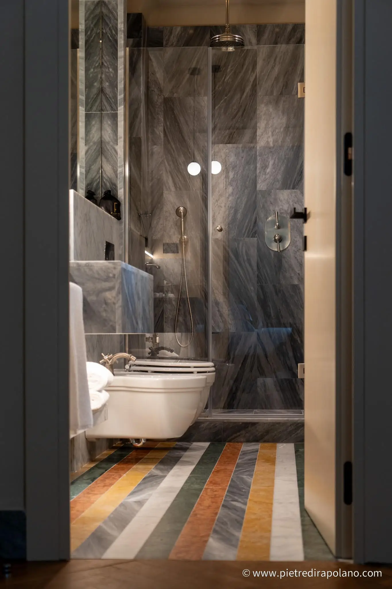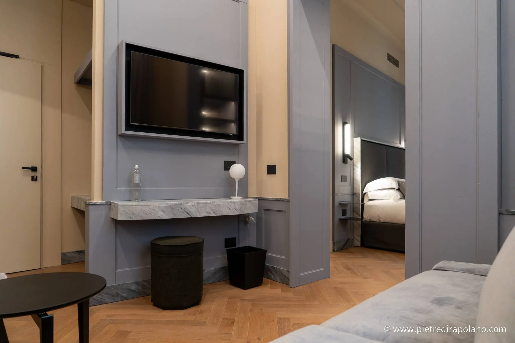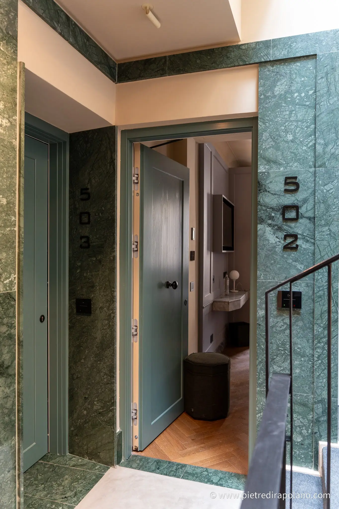 È la dimostrazione che l’utilizzo sapiente di materiali naturali di alta qualità può dare vita a spazi abitativi unici, dove storia e design contemporaneo convivono in perfetta simbiosi.