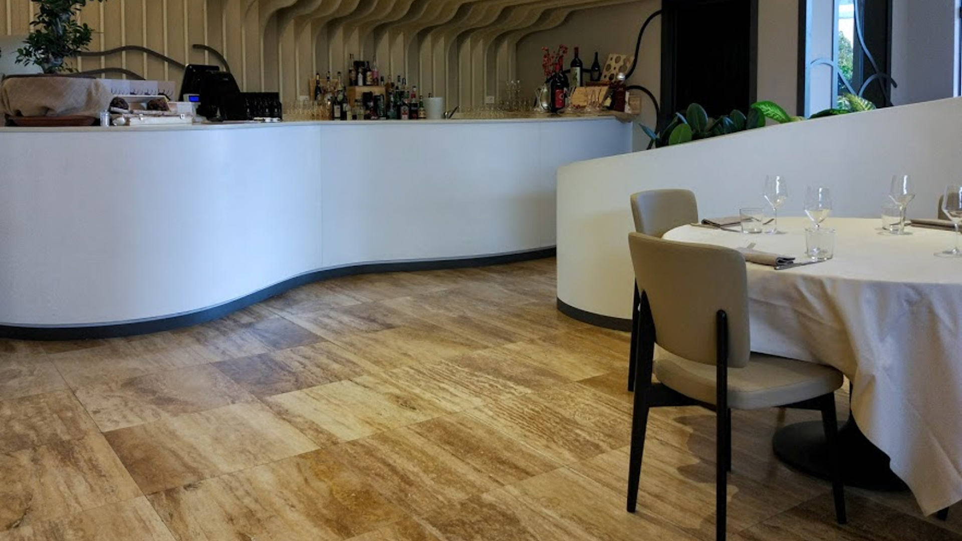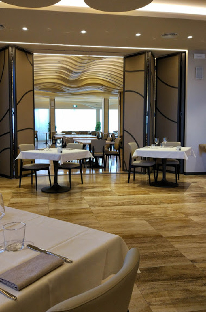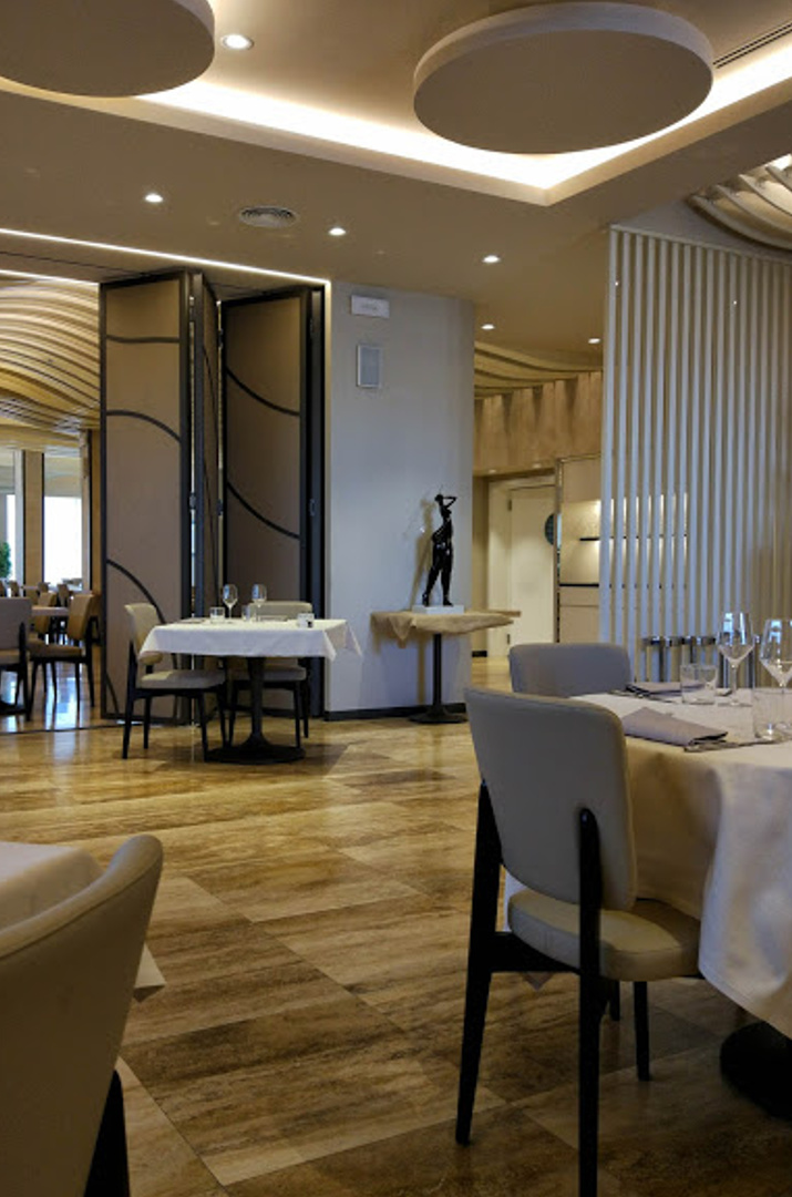 Il tocco artistico, oltre ad essere presente nei piatti, è stato riportato anche nella creatività degli interni. La palette di colori è concentrata nei toni del beige e ocra chiaro che donano luminosità all’ambiente.