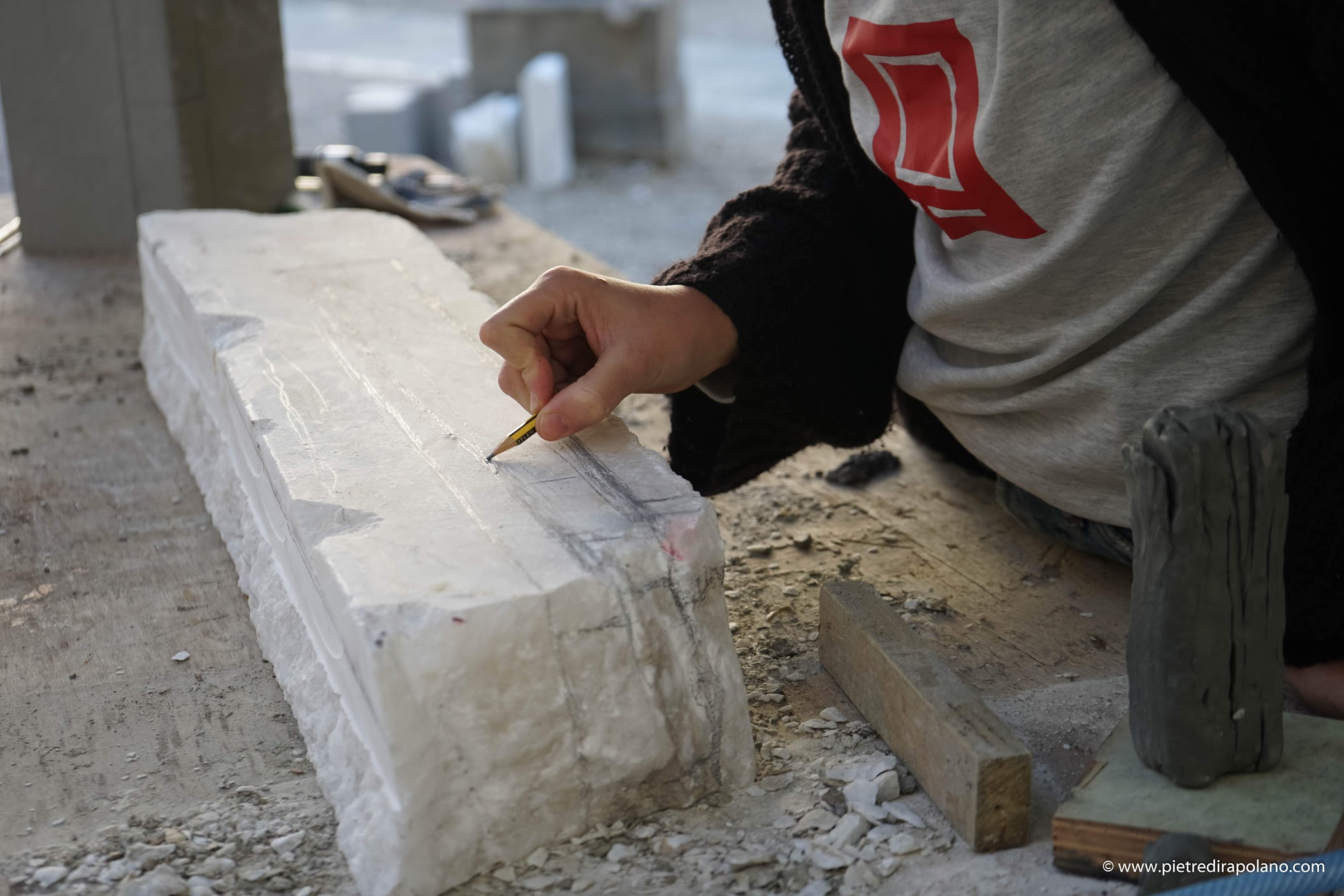 Per tre giorni, studenti selezionati dal Prof. Francesco Roviello, docente di Scultura lapidea, hanno scolpito un blocco di pietra per trasformarlo nella loro opera d’arte.