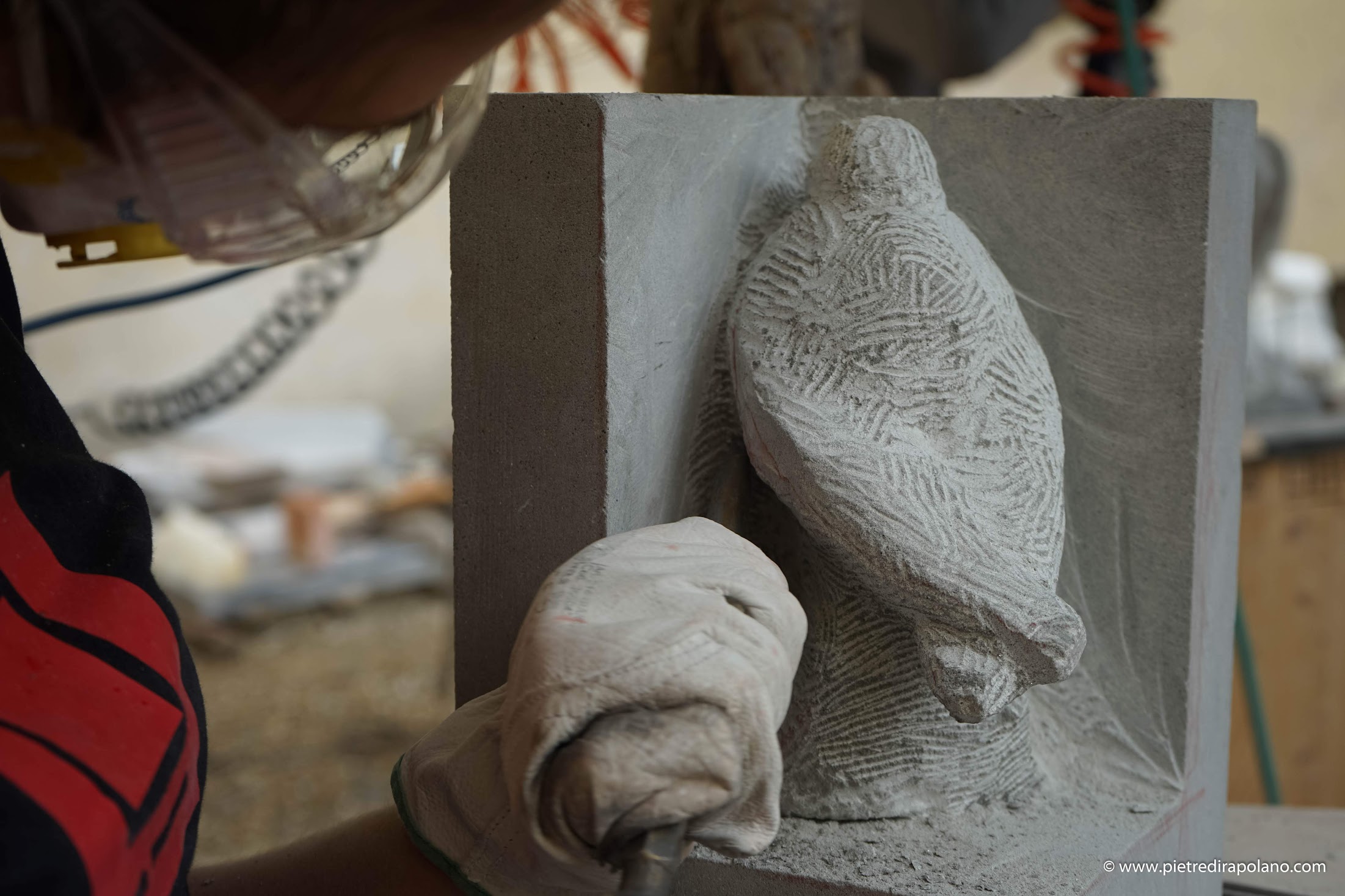 Il limitato tempo a disposizione concesso, aggiunge tensione ad un compito comunque impegnativo. L’impegno, lo sforzo, l’emozione, si trasferisce dagli artisti alla pietra attraverso gli strumenti idonei a imprimergli una forma.