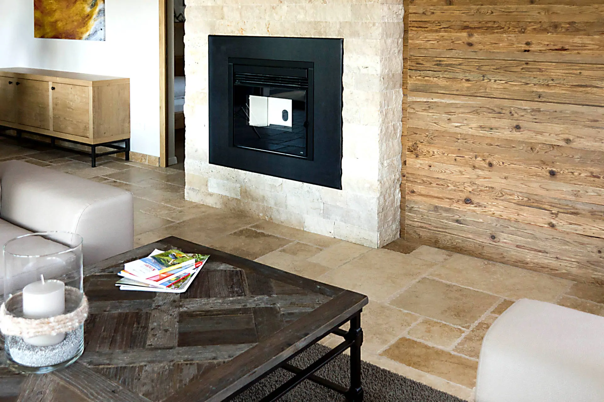 Devi realizzare l’intero rivestimento della parete che ospita il camino? Una soluzione alternativa è quella di scegliere uno dei nostri mosaici disponibili a catalogo: particolarmente indicato per case di montagna o dal gusto country è il mosaico “a spacco”, che presenta tessere di formato rettangolare dalla finitura volutamente materica e ruvida che valorizza la grana della pietra.
