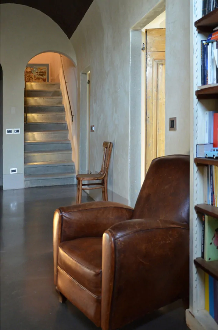 Come tutti gli altri elementi di finitura di un interno, la scala può avere colori in contrasto con quelli dei due piani collegati, o in continuità.